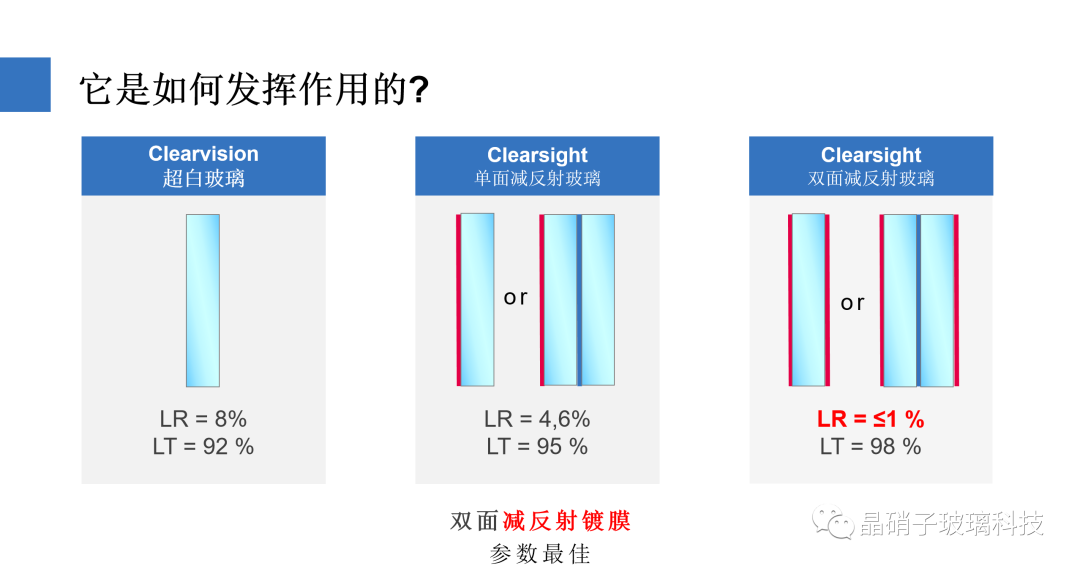 อัตราการส่งแสงที่มองเห็นได้ของกระจกสะท้อนแสงต่ำสองด้านเดียวอาจสูงถึง 99%และอัตราการส่งแสงที่มองเห็นได้ของกระจกสะท้อนแสงต่ำลามิเนตอาจสูงถึง 98%
